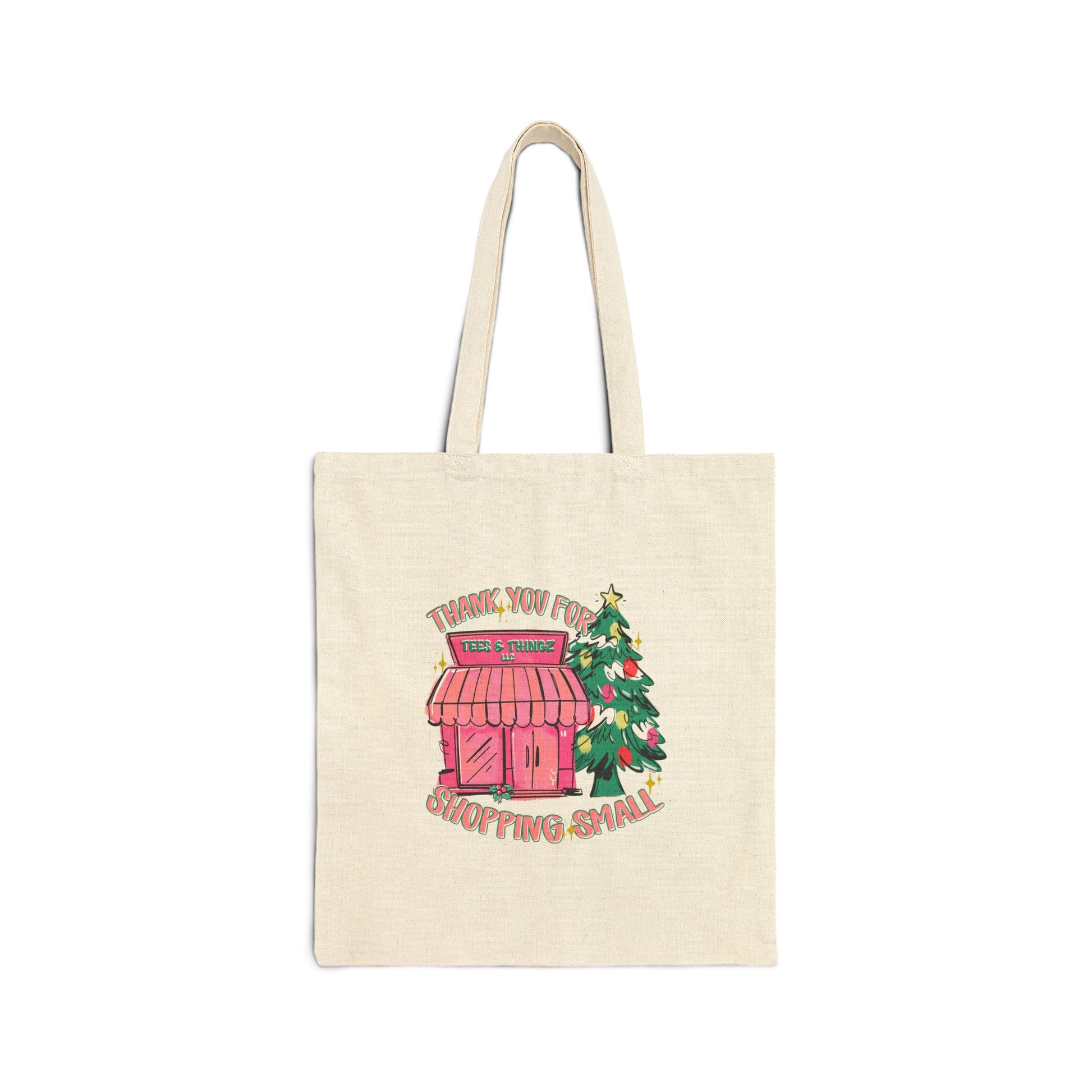 This holiday-themed cotton canvas tote bag is perfect for supporting small businesses and shopping small. The durable fabric and reinforced stitching make it ideal for carrying gifts or groceries. Great for adults looking to add a festive touch to their holiday shopping. Perfect for Christmas, Small Business Saturday, and everyday use.